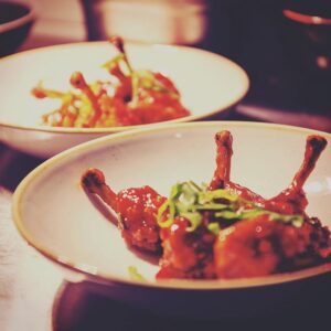 A trio of tandoori salmon, very lightly marinated with dil and mustard.